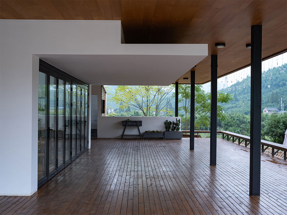 楼顶两户都配有大面积的屋顶露台,我们的住户可以躺在沙发上看着竹海发呆,可以拉上竹帘在星空下沐浴,可以躺下来呼吸最洁净的空气。底层的两户都配有面向竹海的私家小院,我们希望住户可以在竹林中的躺椅上体验最原真的莫干山。